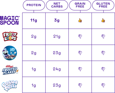 Enter Magic Spoon, which (they claim) offers the flavors you love in an acceptable healthy way. The four cereals are fruity, frosted, cocoa, and blueberry. “We’ve reimagined all your favorite childhood cereals with only 3g net carbs, 11g complete protein, 110 calories, and nothing artificial.” See these at: https://magicspoon.com/. If you try them, report back to me. I'm busy right now chasing Kix that escaped from my bowl, a true “adventure” cereal.