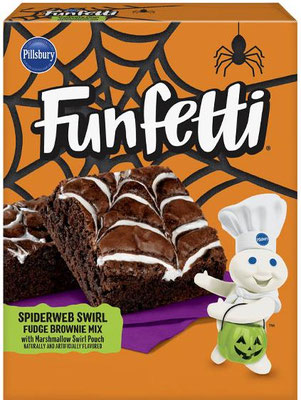 Halloween lovers might try Pillsbury's new Funfetti Spiderweb Swirl Fudge Brownie Mix.