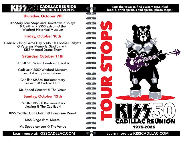 The Cadillac Area Visitors Bureau has fantastic resources featuring everything you need to know about KISS 50. These not only include information about the tour, but also all the schedules and events for the KISS 50 weekend. Be sure to read the latest press release. It's all at kisscadillac.com.